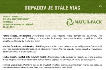 Danica Nejedlá, moderátorka: „Spustili zálohovanie PET fliaš. V žltých vreciach či kontajneroch na plast by tak malo časom zostať viac miesta.“